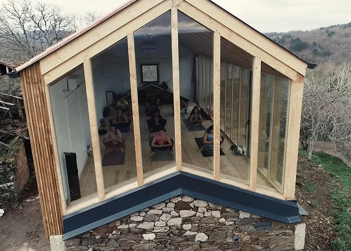 تقع فندق Geodesic Domes with Best Views in Ribeira Sacra المكونة من 1 غرفة نوم على بعد حوالي 15 دقائق بالسيارة من Ecomuseo de Arxeriz، وتقدّم تراس التشمُّس ودروس يوغا والمنطقة للنزهات لترفيه الضيوف.